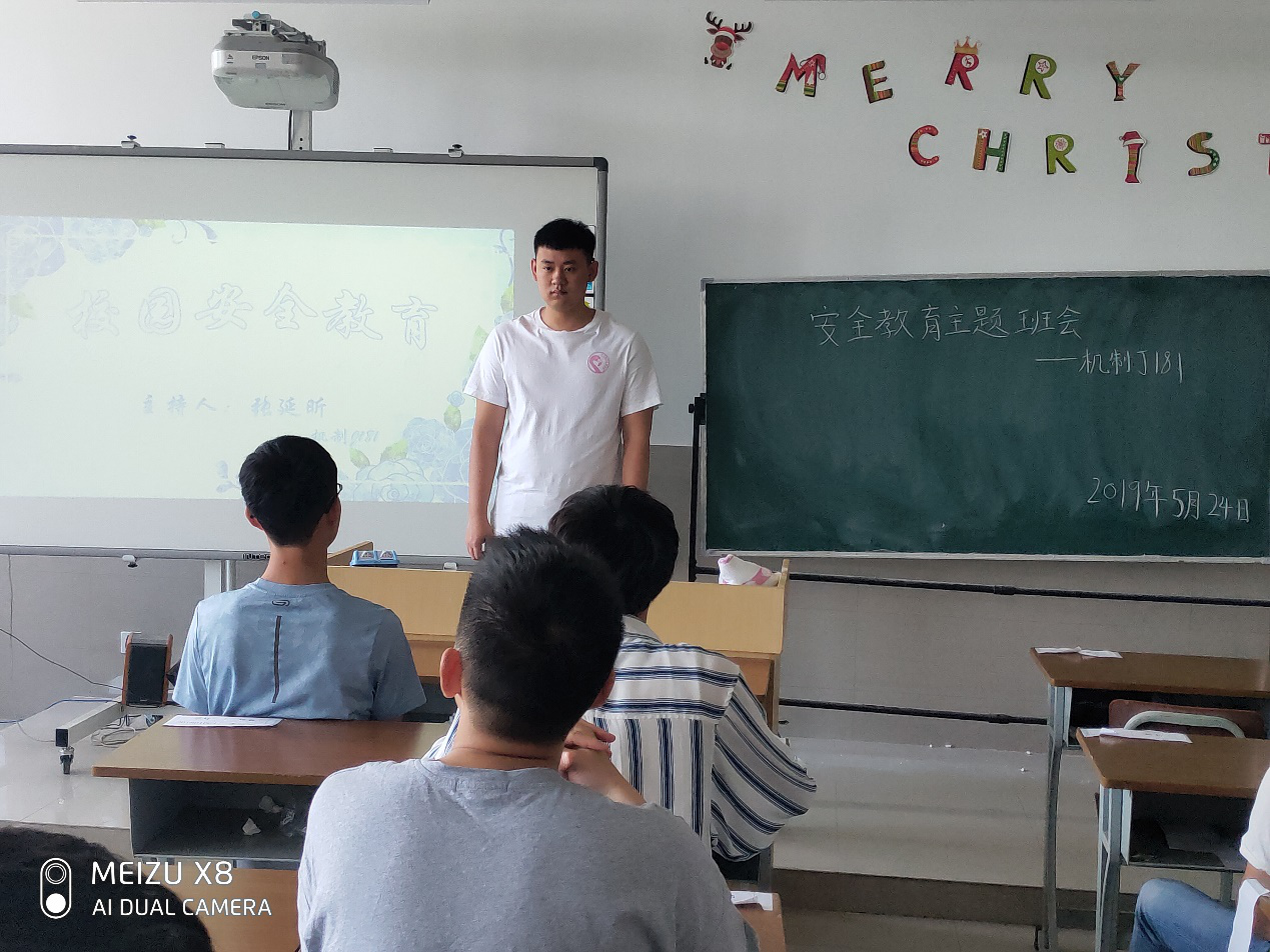 为了增强学生的防范意识和自我保护能力,防止学生上当受骗,上海工商职业技术学院机电工程系机制J181班于2019年5月24日星期五开展了以“安全教育”为主题的班会活动,本活动由班长及安全员刘猛主持。
