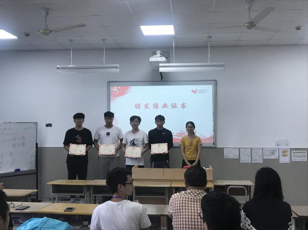 结业仪式上,由张彦老师邀请丁书记以及各位辅导员为机电系党员工作站第五期入党积极分子颁发结业证书。随后丁书记对本期党课培训班进行了总结,字里行间中流露出对这一批同学们的厚望。