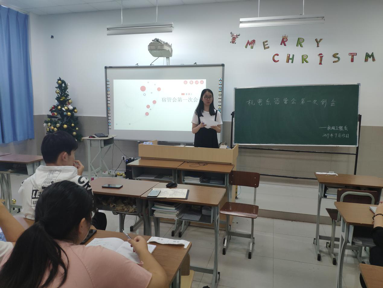 2019年9月25日下午四点,机电工程系宿管会在34号楼445教室召开了本学期的第一次工作会议,出席本次会议的有:机电工程系党支部书记丁敏老师,机电工程系宿舍管理委员会负责人沈婷老师以及机电工程系系宿管会各部门干部。