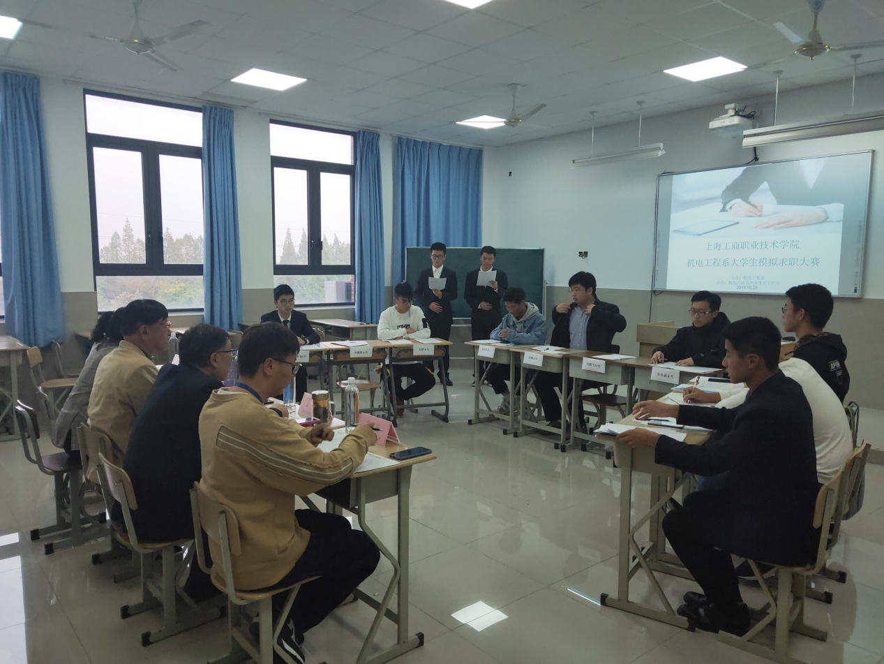 2019年10月28日下午16:30,机电工程系职业生涯工作室于34号楼445教室举行了大学生模拟求职比赛,作为评委出席此次大赛的有:机电工程系主任徐名聪、机电工程系党支部书记丁敏、机电工程系职业生涯工作室负责人张彦、机电工程系辅导员高华、宋淳正以及全体参赛选手和部分观众。