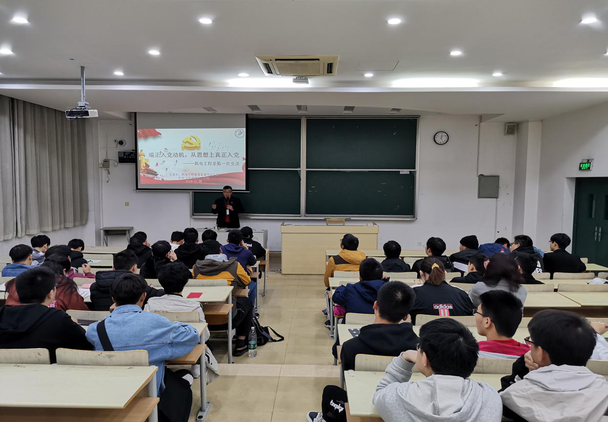 本次党课由机电工程系党支部书记丁敏主讲,主题为“端正入党动机,从思想上真正入党”,目的是为了让同学们树立正确的入党动机、了解端正入党动机的重要性、自觉接受党组织的培养和考察,更重要的是让同学们知道端正入党动机是入党的首要问题。