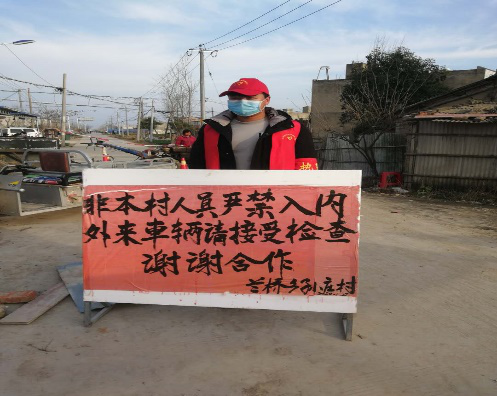 机电工程系大二学生刘猛主动参与村庄疫情防控工作!