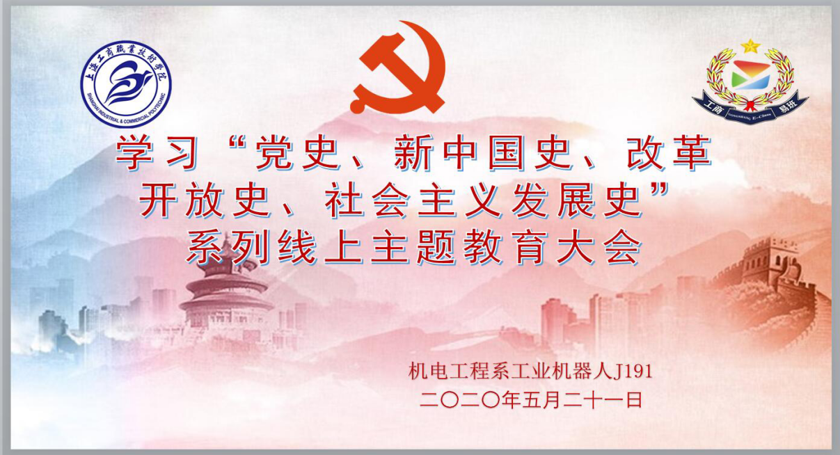 2020年5月21日13点30分,19级工业机器人一班开展了“学四史”主题班会活动,因疫情原因此次活动用线上的方式进行。参加本次活动的有机电工程系党支部支书记丁敏、机电工程系辅导员宋淳正、机电工程系易班分站站长蔡志弘和机电工程系19级工业机器人一班全体同学。本次主题班会由张世锋同学主持。