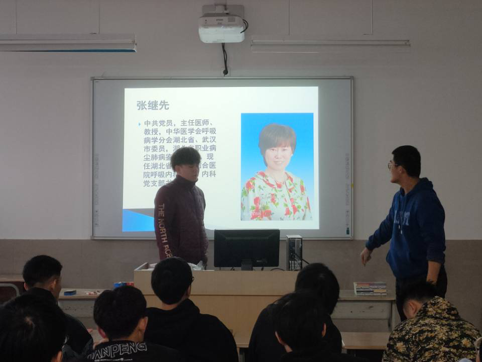 班会伊始,班长朱叶贝为大家介绍了完美诠释此次班会主题的人物之一:张继先教授,她在抗击疫情的战场上,勇于担当,把党和人民的利益放在首位,坚持在离疫情最近的地方战斗。她用自己的实际行动为新一代青年做了榜样。随后,团支书陆心煦关于勇于担当的重要性,提出自己的看法,同学们也非常认同他的看法。