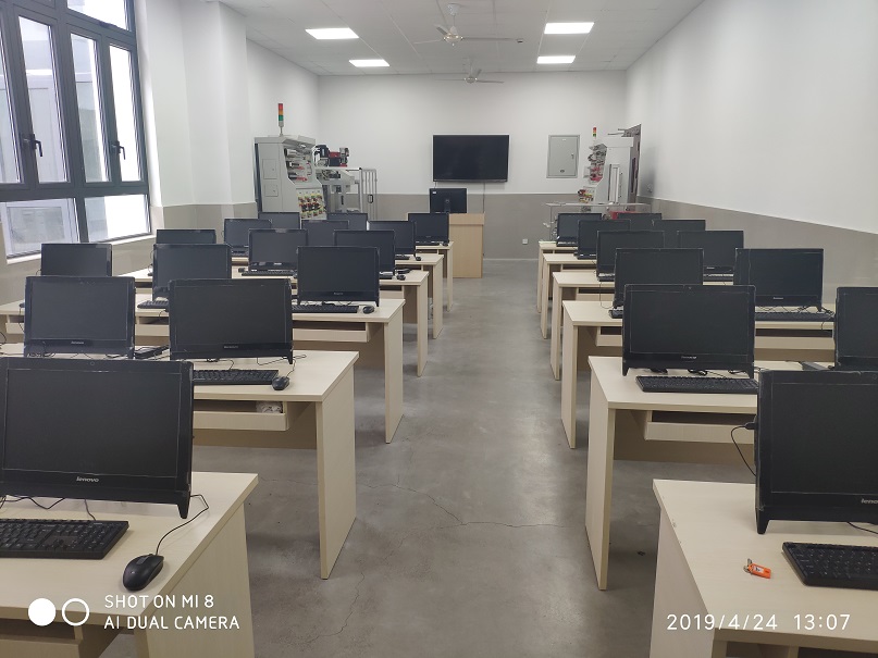 机电实训中心拥有2个多媒体计算机教室,总面积110平方米,共98台教学用电脑。数控仿真机房建于2007年、CAD/CAM机房建于2010年,并配备了4台小型3轴联动雕刻机。目前这2个机房都安装了宇龙数控仿真、AutoCAD2008、CAXA、NX6.0、Pro/E、CATIA V5、SOLIDWORKS2012 、SOLIDEDCAM2012、MASTERCAM、VERTCUT等机械类计算机辅助设计、计算机辅助制造、数控仿真等教学应用软件。