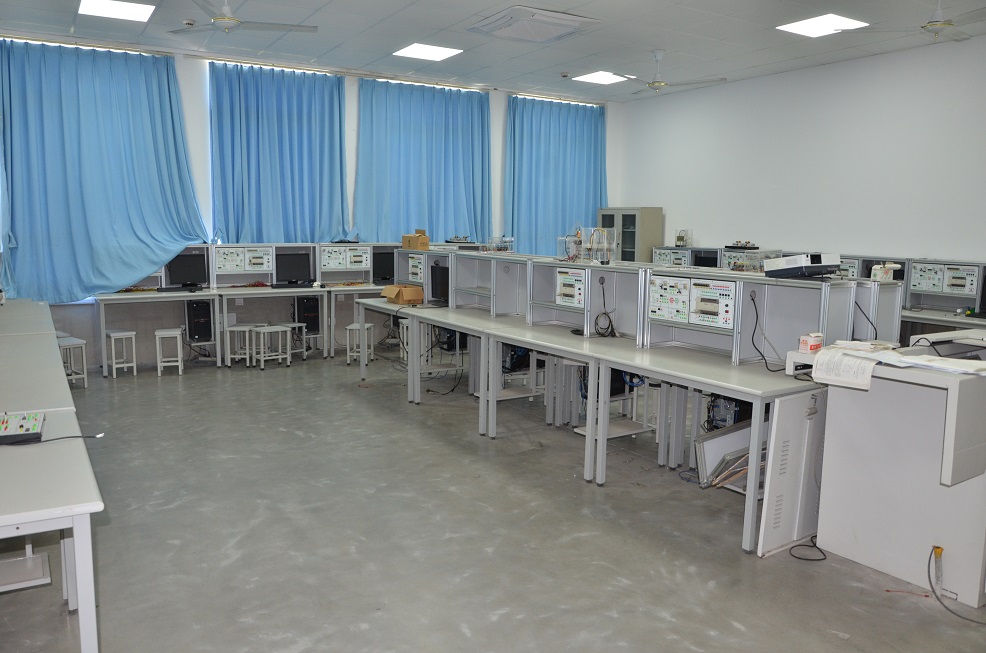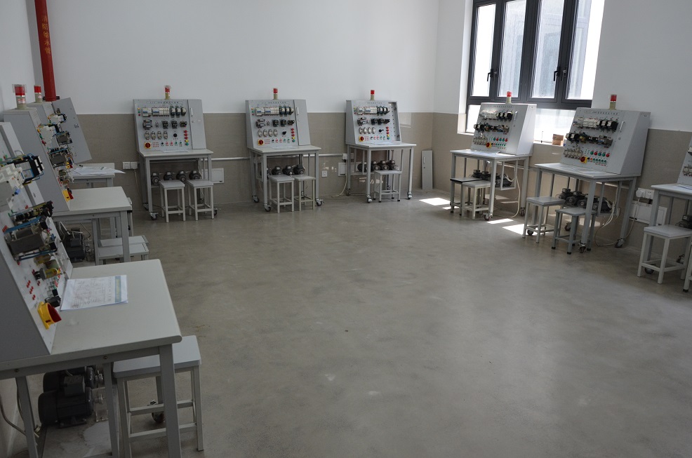 维修电工中级技能实训室建于2010年,总面积230平方米。拥有电工中级PLC实训室24套实验台、电子技术实训室10套实验台、机床模拟排故实训室9套实验台、电气接线调试实训室24套实验台,共4个实训模块区域,总工位数达67个。可满足80人同时进行维修电工中级考证各个模块的培训。目前,维修电工中级技能实训室经过3次大的设备改造与更换,所有鉴定模块实验台的型号规格已经与上海市职业技能鉴定中心的维修电工中级考核设备一致,这也大大提高了学生技能考证的通过率。维修电工中级技能实训室除主要承担我校机电专业学生的考级考证培训外,可全面承接本工种等级的社会培训任务。